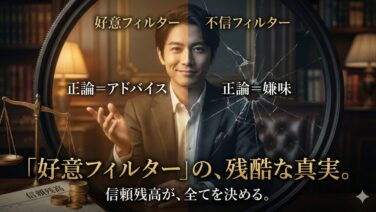 恋愛において、「何を言うか(Content)」は重要ではありません。「誰が言うか(Context)」これですべてが決まります。同じセリフ、同じLINE、同じ行動であっても、相手の中にあなたへの「信頼残高(好意)」があるかどうかで、その意味は180度反転します。多くの非モテ男は、この「残高」を確認せず...