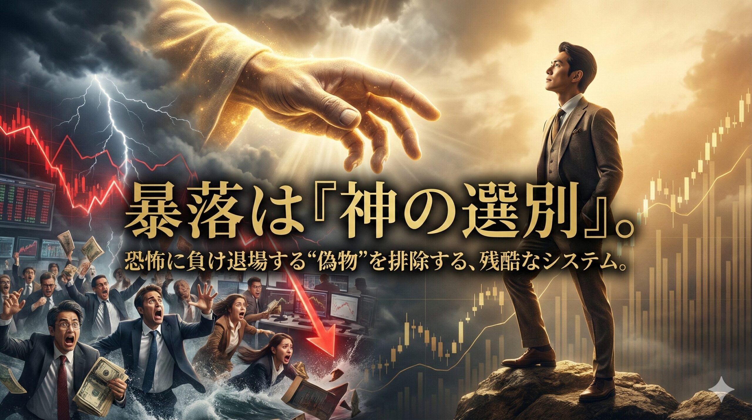 今回は、暴落という名の「選別儀式」を生き残り、敗者の死骸(損切りされた株)を拾って富を築くためのロジックを解説します。